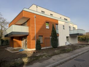 Les appartements, véritables joyaux de cette résidence, séduisent par leurs équipements modernes. Les planchers chauffants par pompe à chaleur individuelle assurent un confort thermique optimal. les grandes fenêtres inondent les espaces de lumière naturelle, tandis que les terrasses aux surfaces généreuses offrent des vues panoramiques, notamment l’Ill. L’aménagement intérieur personnalisable allie fonctionnalité et esthétisme pour créer des espaces de vie accueillants et harmonieux.